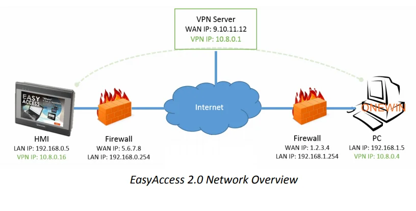 remote human machine or PLC, and EasyAccess 2.0 can be connected Multiple HMI.