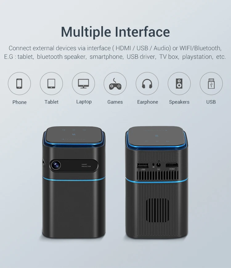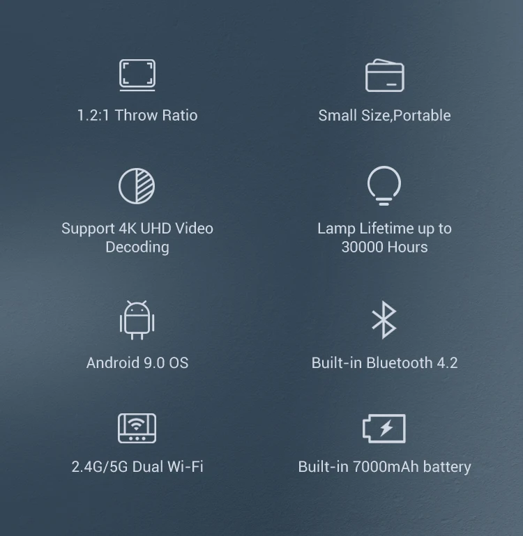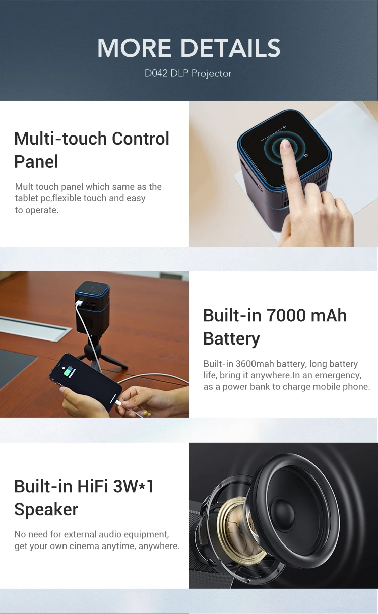 4K Projector Smart Handheld & Portable Proector D042 Touch Pad 100 Inch Max Outdoor Cinema Office Theater Game Projection