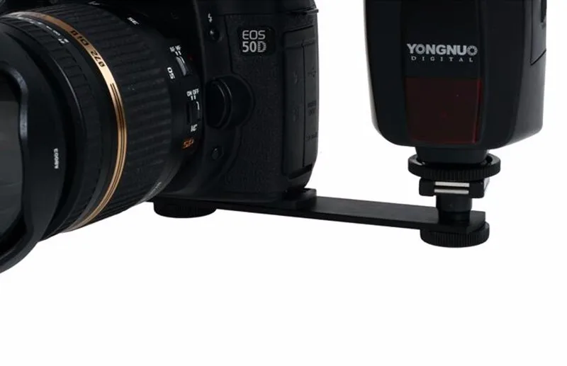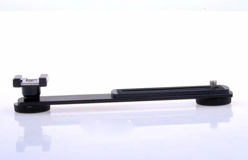 Features a sliding 1/4" - 20 camera screw allowing variable positing of the flash or other accessory at the camera's side. The flash bracket accepts a mount type flash and has a tripod socket.