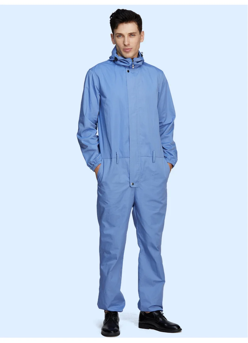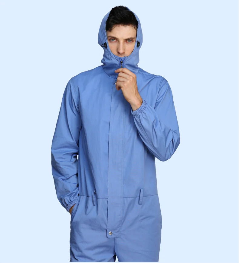 Electromagnetic radiation protective metal fiber fabric single layer hooded coveralls