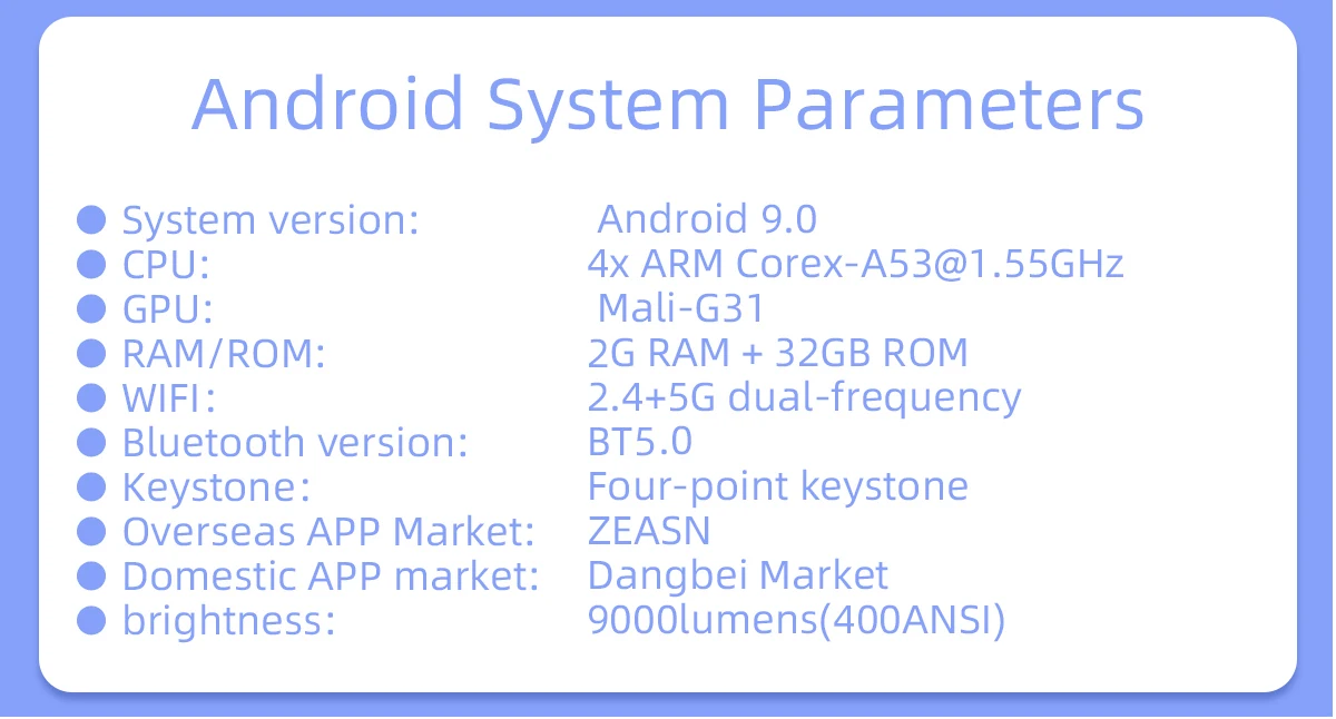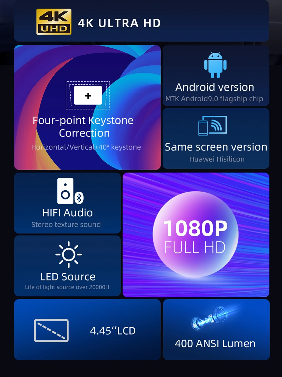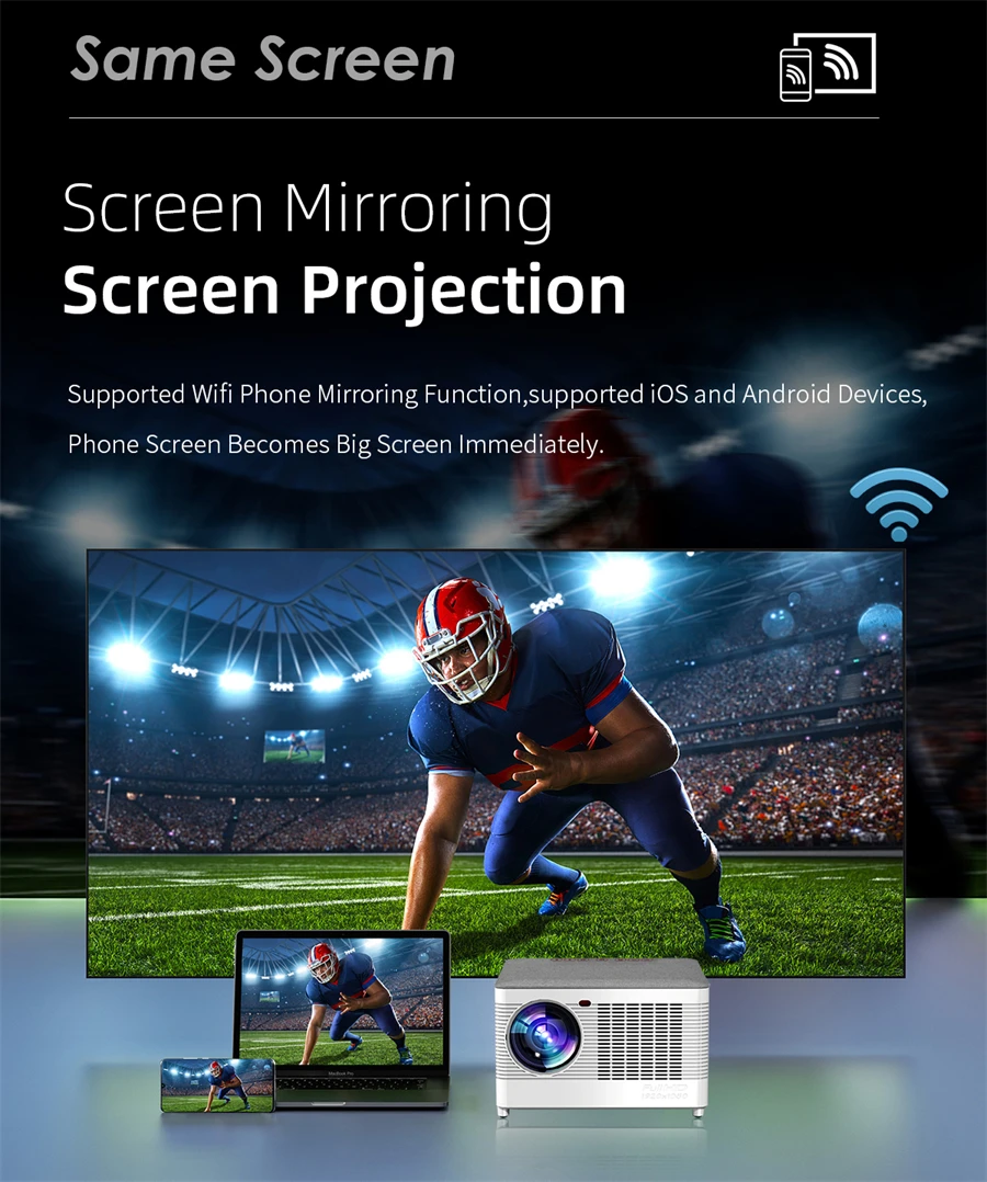 • 12000 Lumens Brightness :Enjoy a bright and clear projection with a brightness of 12000 lumens.