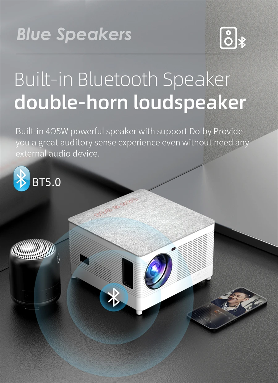 • Bluetooth-compatible :Connect your TV stick or laptop to the projector wirelessly via Bluetooth for a seamless viewing experience.