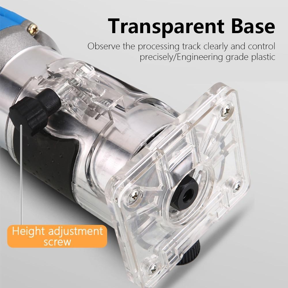 Efficient & practical electric trimmer, the all-copper motor can hold high temperature and generate less heat to prolong the service time. A flexible and simple operation can cut a variety of trimming shapes like square groove, round bottom groove, V groove, round edge, bevel edge, etc. To meet your different requirements.