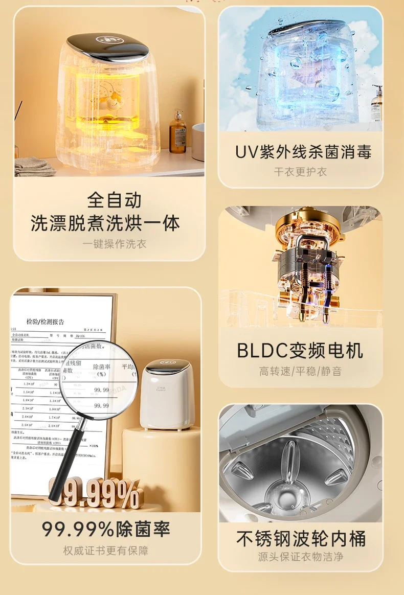 Small Mini Fully Automatic Underwear & Socks Washing Machine - Dedicated with Washing and Drying Function